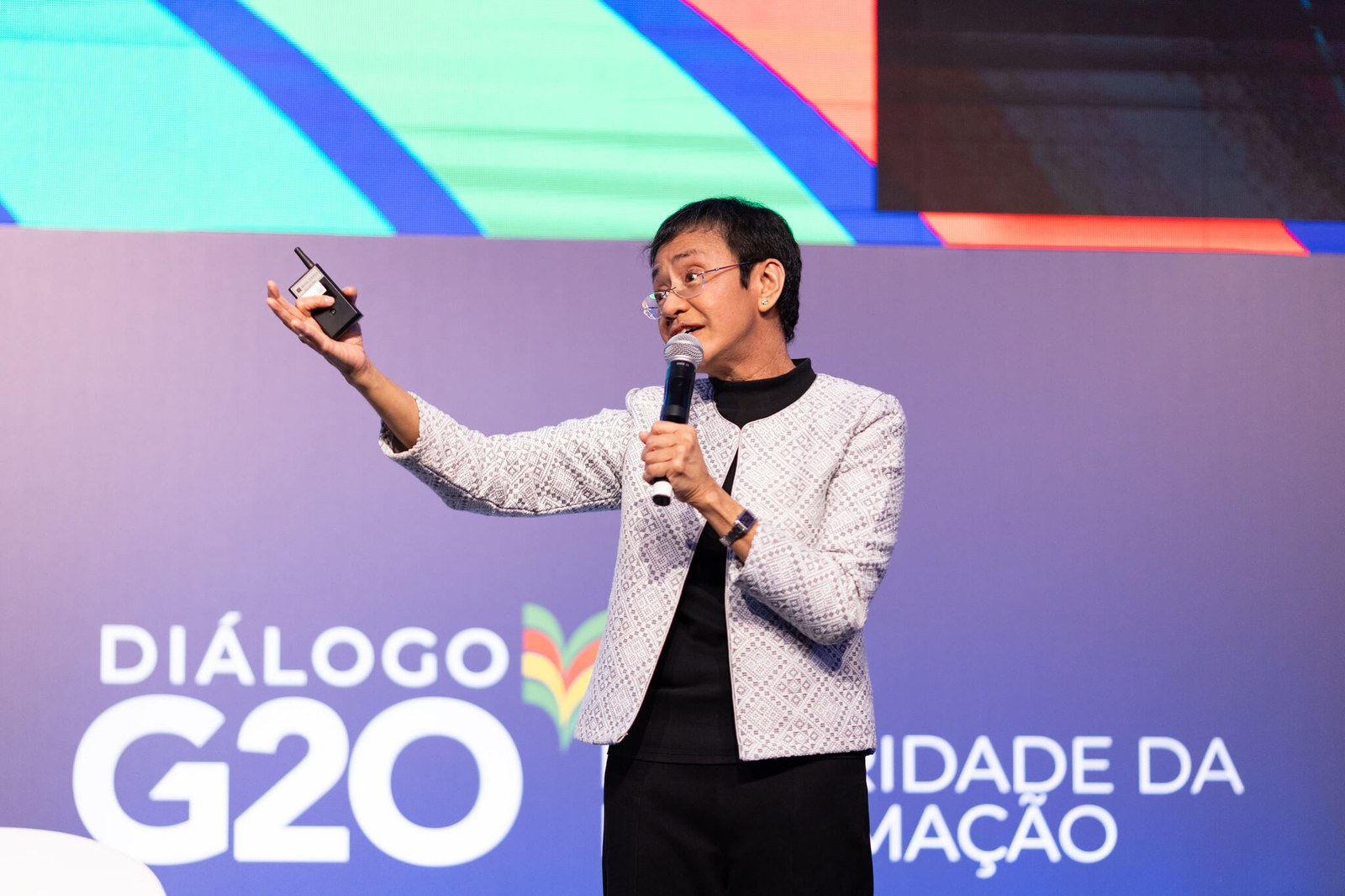 Maria Ressa, ganadora del Premio Nobel de la Paz de 2021, participó en el segundo día del evento sobre integridad de la información del grupo de trabajo sobre Economía Digital del G20, el día 1º de mayo en São Paulo. Ressa es periodista desde hace más de 37 años y trabaja para garantizar la libertad de expresión y la democracia. Es cofundadora, CEO y presidenta del Rappler, la principal página web de noticias y de defensa de la libertad de prensa en Filipinas.