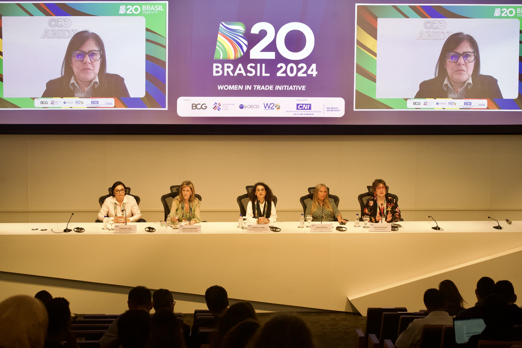 Participaron en la actividad Janaína Gama, codirectora del Grupo de Compromiso Women20, y Tatiana Prazeres, secretaria de Comercio Exterior del Ministerio de Desarrollo, Industria, Comercio y Servicios (MDIC), quien coordina el Grupo de Trabajo de Comercio e Inversiones del G20. Ambas tuvieron intervenciones en la apertura del evento. Esta fue una iniciativa de colaboración entre los grupos y un intercambio entre el Canal de Sherpas y el G20 Social, uno de los principales objetivos del G20 Brasil.