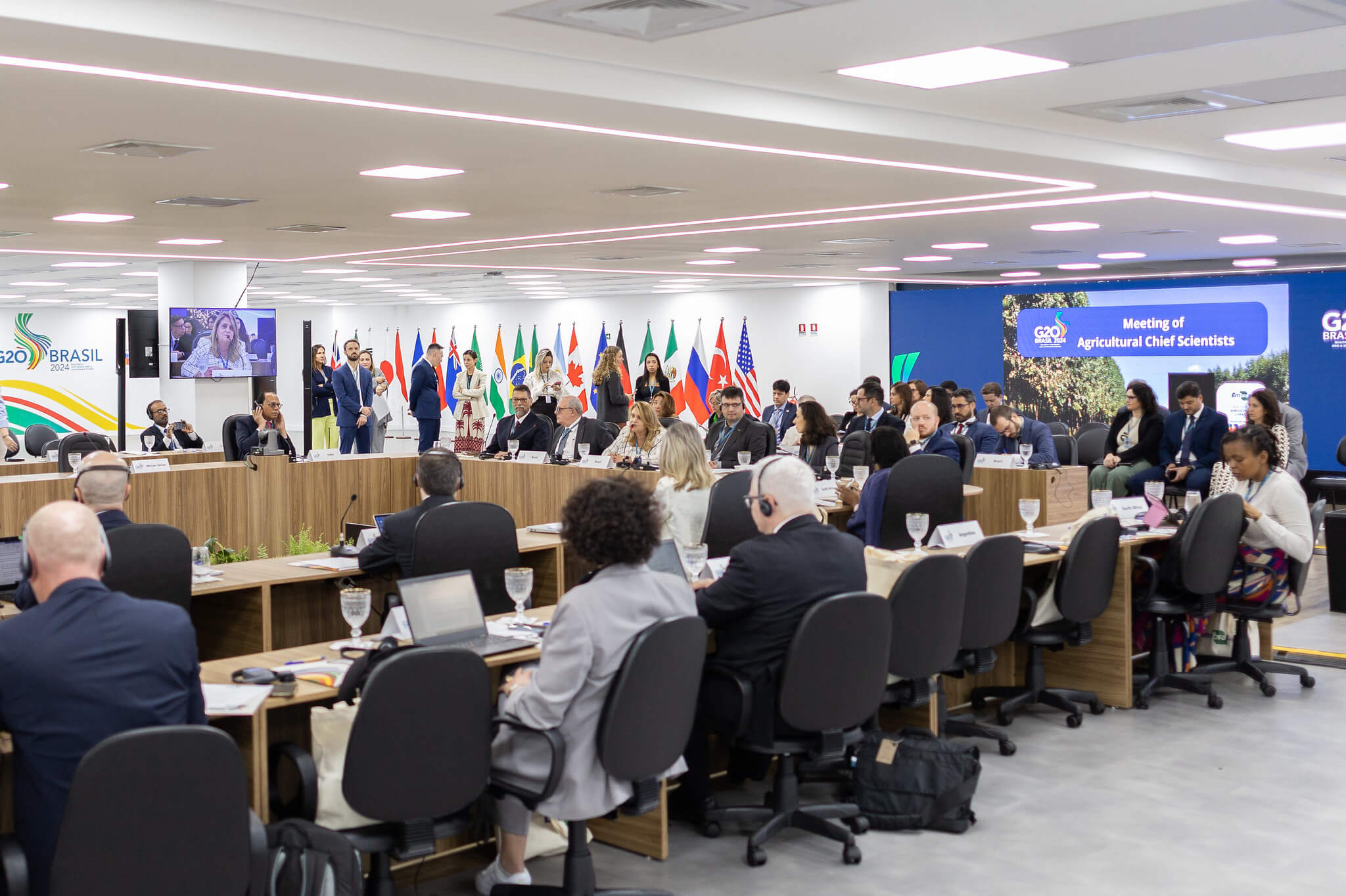 La seguridad alimentaria y adaptación de sistemas agrícolas al cambio climático fueron los principales puntos abordados por los líderes agrícolas del G20, para garantizar un futuro más igualitario y sin hambre para las nuevas generaciones. La reunión se celebra hasta el 17 de mayo en la sede del G20 en Brasilia y está promovida por la Empresa Brasileña de Investigación Agropecuaria (EMBRAPA, por sus siglas en portugués). La reunión forma parte del G20-MACS (Meeting of Agricultural Chief Scientists), encuentro anual de las presidencias de las organizaciones de investigación agropecuaria vinculadas a los Ministerios de Agricultura, o similares, de los países del G20, para debates de alto nivel centrados en la investigación y desarrollo en el ámbito de la agricultura, con el fin de dar visibilidad global a cuestiones de seguridad alimentaria y promover acciones conjuntas a nivel internacional.