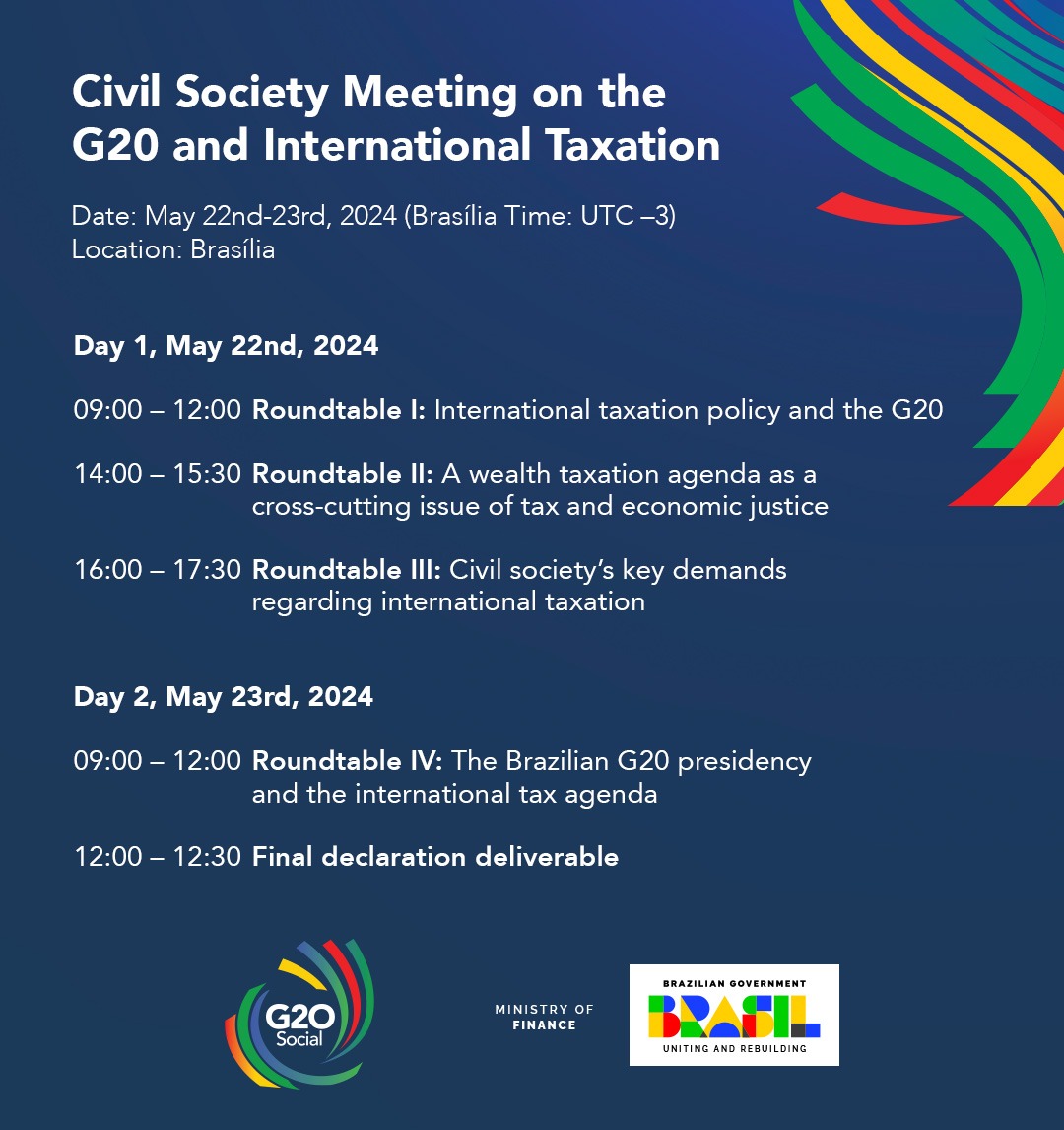 InícioCalendárioEventos ParalelosEncontro da sociedade civil sobre o G20 e a tributação internacional