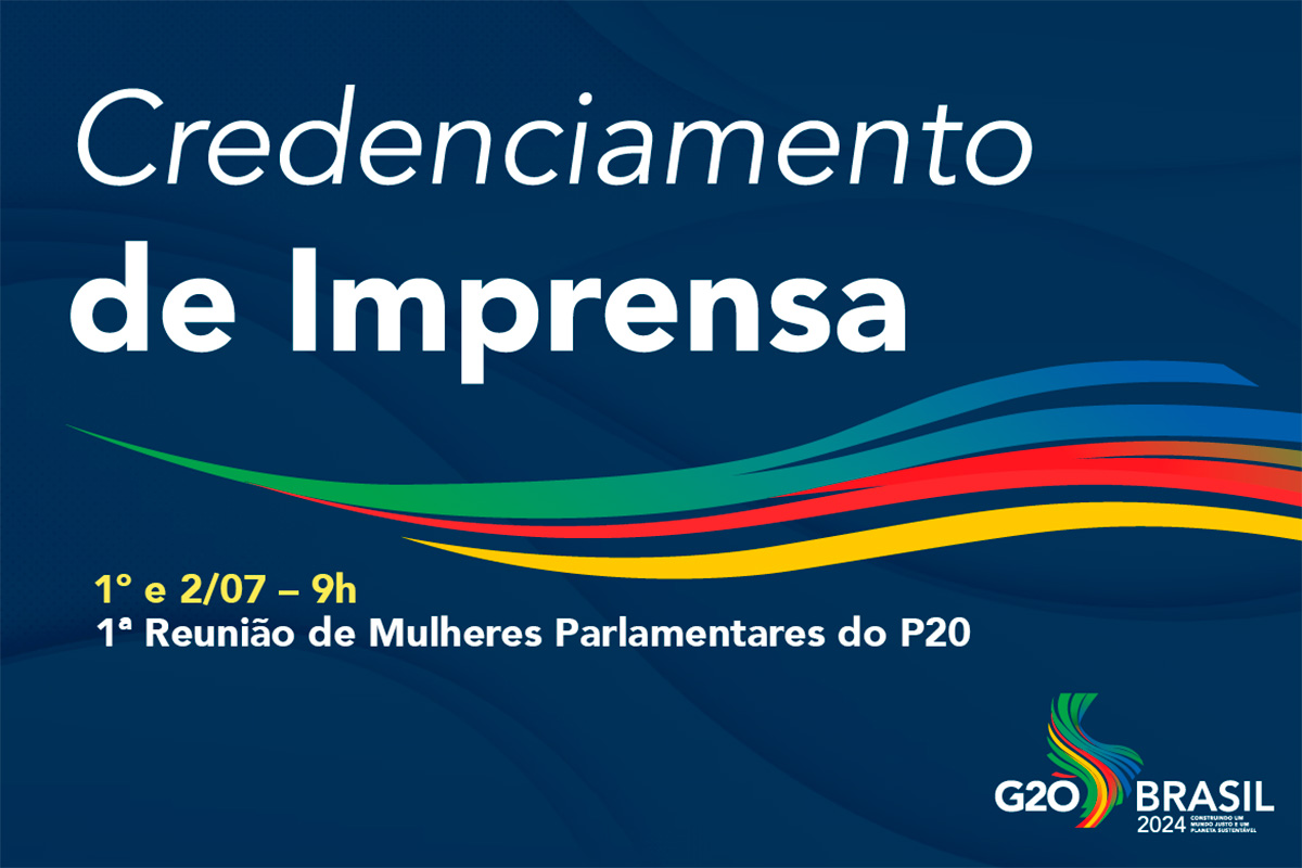 A Câmara dos Deputados abriu o período de credenciamento dos profissionais de imprensa brasileiros e estrangeiros que farão a cobertura da 1ª Reunião de Mulheres Parlamentares do P20, o fórum parlamentar do G20. O encontro será realizado nos dias 1º e 2 de julho, no Centro Cultural e de Exposições Ruth Cardoso, em Maceió, uma das cidades-sede do G20.
