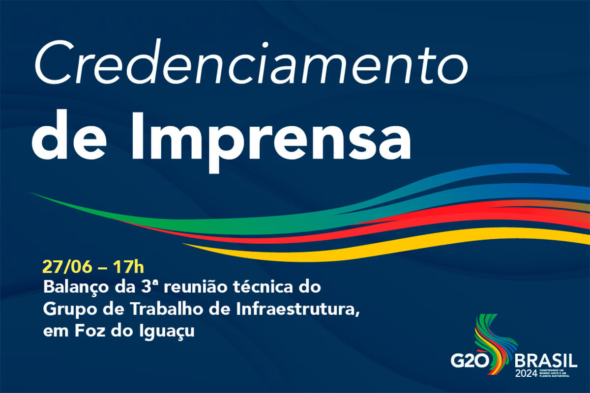 Ao término das sessões plenárias haverá um briefing à imprensa na quinta-feira (27), às 17h. Os profissionais de comunicação terão a oportunidade de conversar com o subsecretário de Finanças Internacionais e Cooperação Econômica do Ministério da Fazenda, Antonio Freitas; o coordenador do GT de Infraestrutura do G20, Marden Barboza; e a responsável pela organização do evento paralelo, Lúcia Darós.