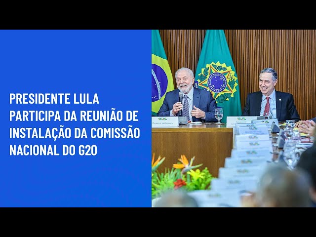 Durante a instalação da Comissão Nacional do G20, no dia 23 de novembro de 2023, o presidente Lula destacou como prioridades a inclusão social e o combate à fome e à pobreza; a transição energética e o desenvolvimento sustentável; e a reforma da governança global. Ministro das Relações Exteriores, Mauro Vieira, ministro da Fazenda, Fernando Haddad, e da Secretaria-Geral da Presidência, Márcio Macêdo também falaram durante a solenidade