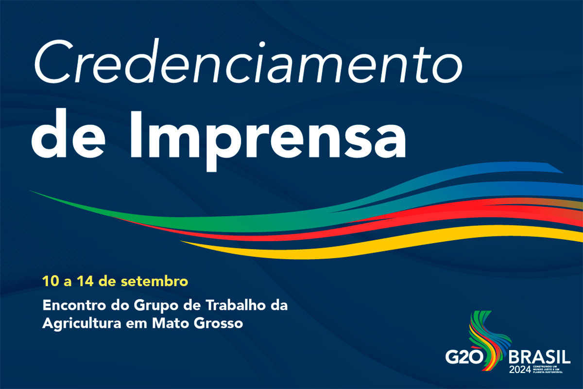 Os veículos de comunicação e os profissionais de imprensa interessados podem realizar o credenciamento para a cobertura da etapa final do Grupo de Trabalho de Agricultura (GT) do G20 Brasil, que será realizada no estado de Mato Grosso.
