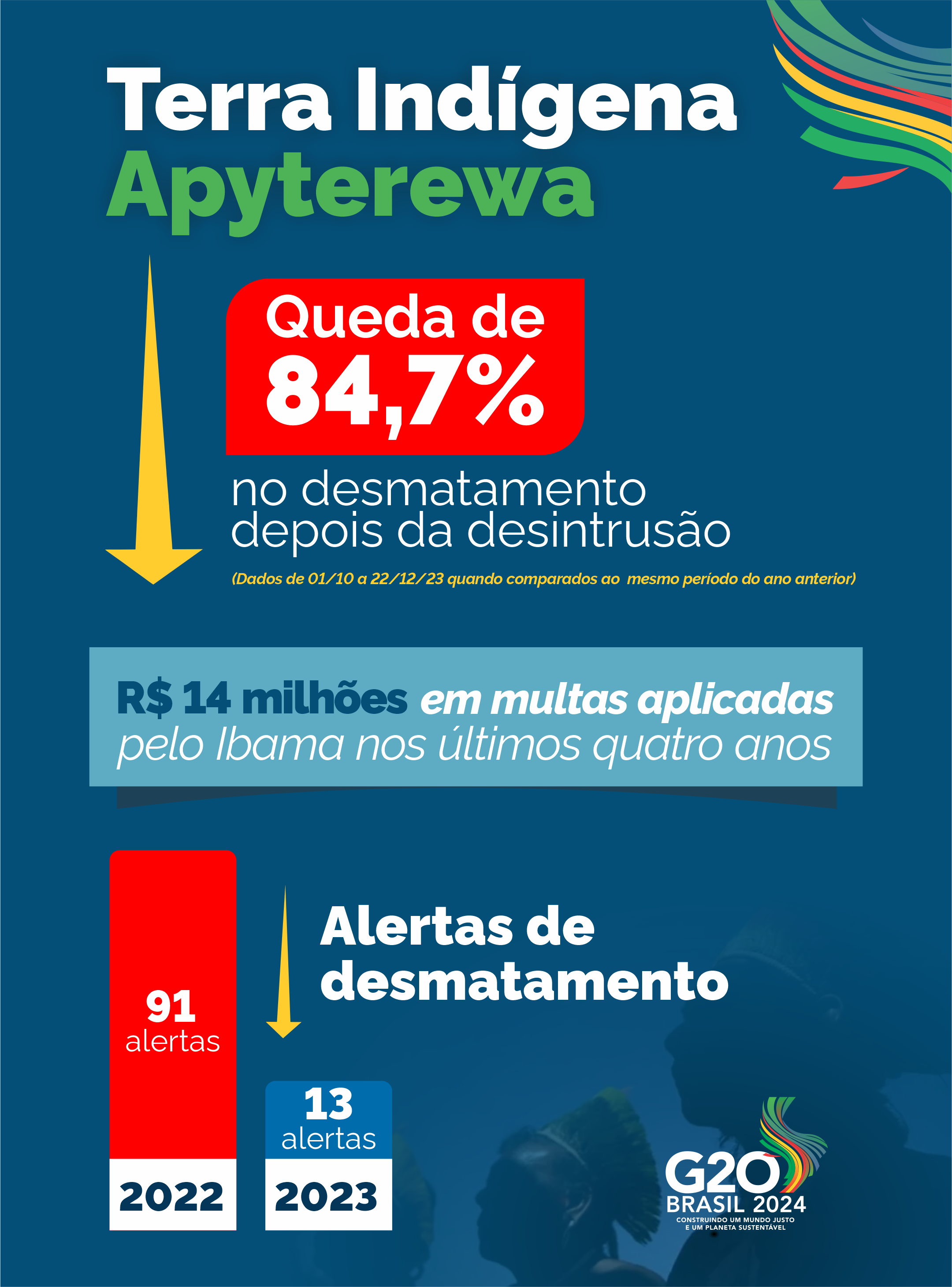 Para cumprir a ordem judicial que determinou a desintrusão, o governo brasileiro montou uma grande operação, com ação integrada de 19 órgãos e instituições públicas, dentre elas forças de segurança e órgãos de fiscalização nacionais. Com a operação de desintrusão, o desmatamento na Terra Apyterewa apresentou uma queda de 84,7% no período de 01 de outubro a 22 de dezembro de 2023, quando comparado ao mesmo ciclo de 2022, de acordo com dados do sistema Deter do INPE. Fiscalizações do Ibama resultaram na aplicação de mais de R$ 14 milhões em multas nos últimos quatro anos.