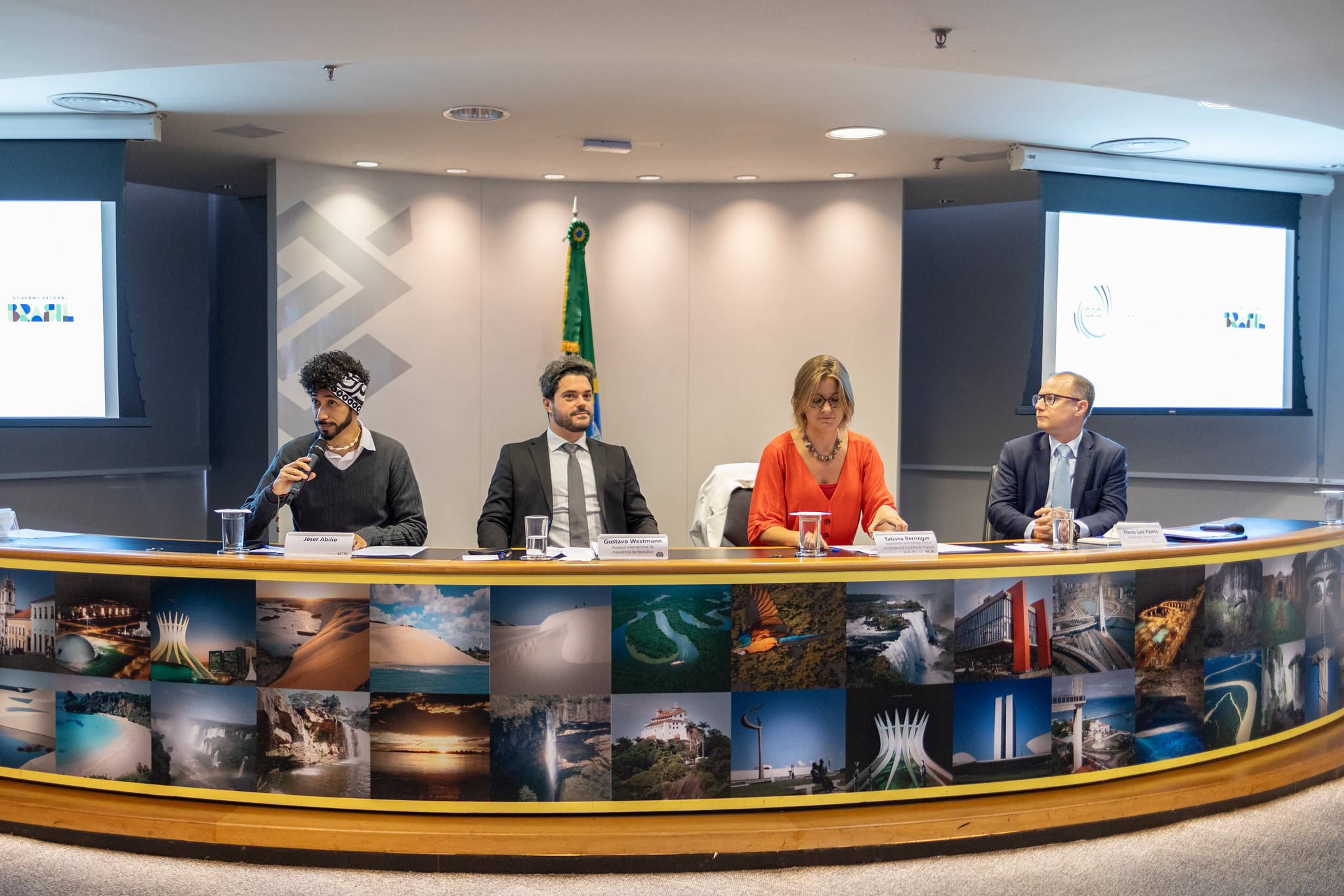 Durante a manhã, Tatiana Berringer (Ministério da Fazenda), Flávio Pazeto (Ministério das Relações Exteriores) e Gustavo Westmann (Secretaria Geral da Presidência da República) apresentaram, na primeira mesa, mediada por Jéser Abílio (Ministério da Fazenda), as características da presidência brasileira para o G20.
