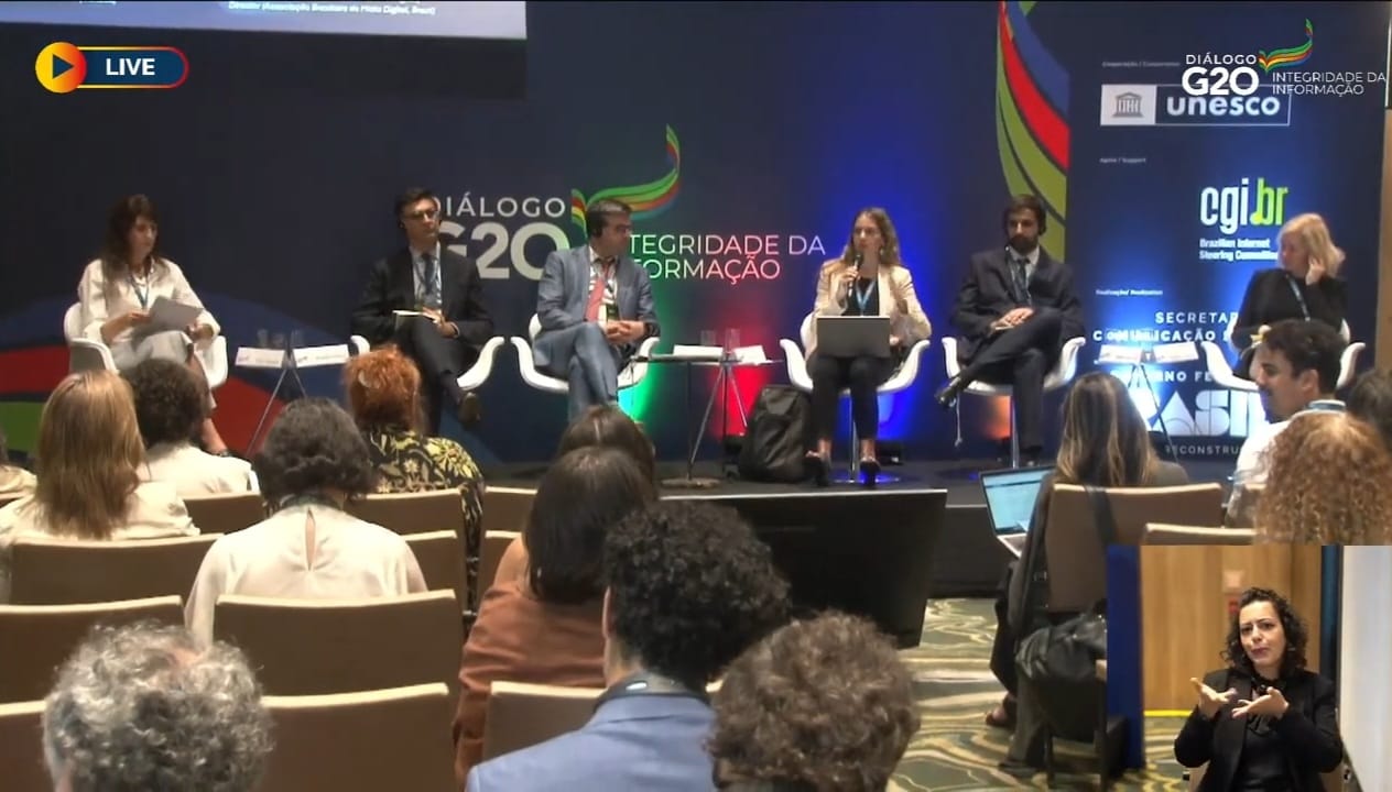 A discussão aconteceu durante o evento paralelo do G20 sobre Integridade da Informação, ocorrido em São Paulo nos dias 30/04 e 01/05 de 2024, no âmbito do Grupo de Trabalho de Economia Digital, com discussões multilaterais globais, no âmbito da ONU, da Unesco e da OCDE.