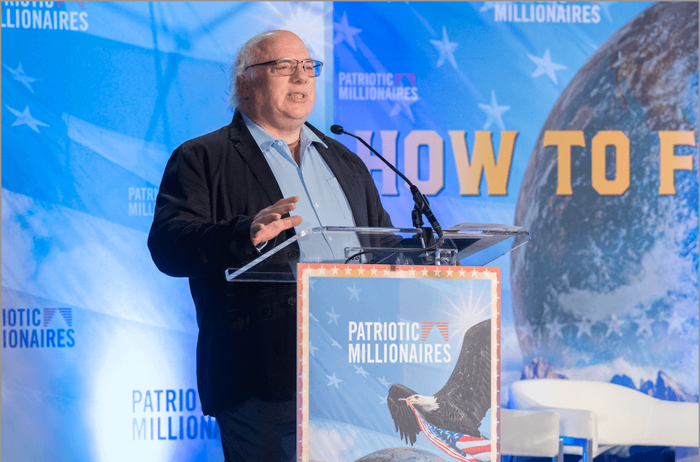 No Milionários Patrióticos, somos um grupo de pessoas ricas, principalmente nos Estados Unidos e também estamos recebendo vários membros no Reino Unido, que compreendem que esta crescente desigualdade está desestabilizando não apenas a nossa nação, mas, francamente, o mundo inteiro. Vemos a ascensão do autoritarismo em alguns lugares porque muitas pessoas simplesmente desistiram do capitalismo e percebemos que ele não está funcionando para um grande número de pessoas.