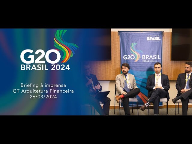 Na terça-feira (26), os representantes do Ministério da Fazenda no Grupo de Trabalho de Arquitetura Financeira Internacional da Trilha de Finanças do G20, Felipe Antunes, Ivan Oliveira e Ricardo Klinger, e do Banco Central do Brasil, Marcelo Aragão, fizeram à imprensa um balanço da segunda reunião do grupo, que aconteceu presencialmente nos dias 25 e 26 de março, em Brasília.