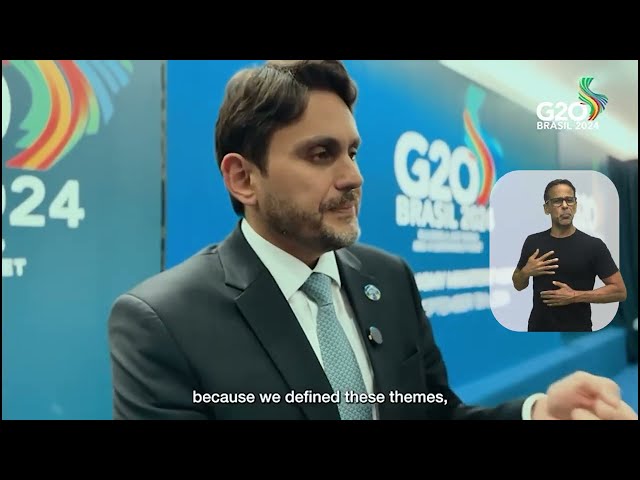 Confira o V-Book com a trajetória da presidência brasileira do G20, através da Língua Brasileira de Sinais (LIBRAS). O conteúdo foi produzido pela Universidade Federal do Rio Grande do Sul (UFRGS), a partir de uma parceria com a Secretaria de Comunicação Social da Presidência da República (Secom) com a finalidade de ampliar o acesso da população às informações do fórum internacional.