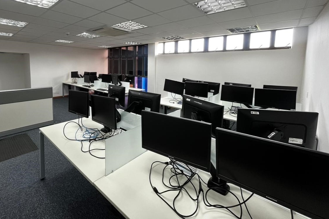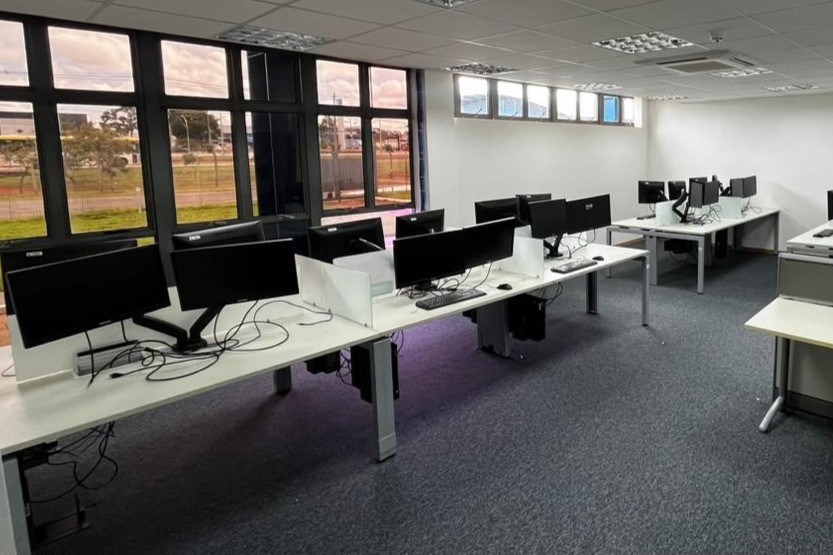 Características: O espaço conta com 4 estações sem computadores e 4 com computadores completos.