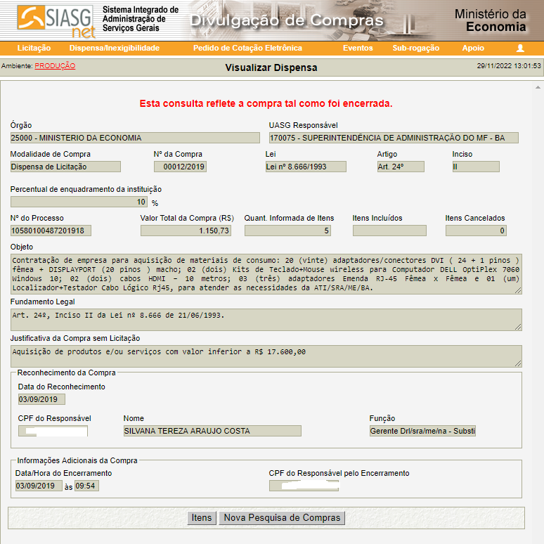 Dispensa de Licitação nº 12/2019