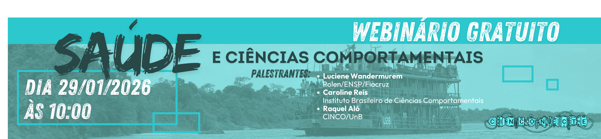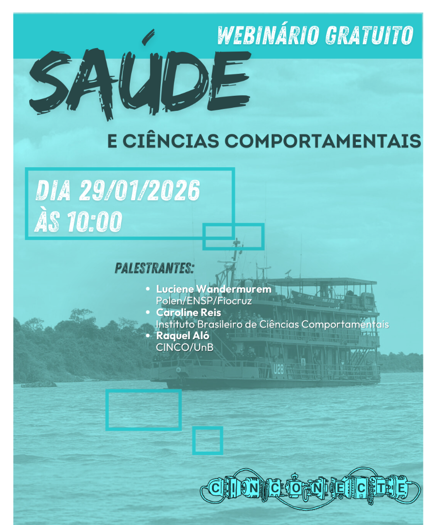 Banner ilustrativo do Webinário da Rede Cinconecte: "Saúde e Ciências Comportamentais".
