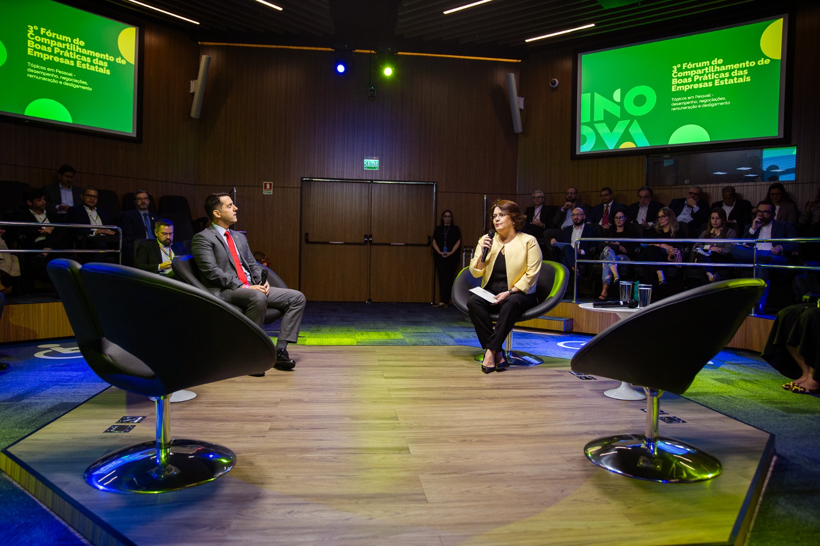 Secretário-adjunto da Sest, Pedro Cavalcante e vice-presidenta de pessoas do BB, durante abertura do 3º Fórum de Compartilhamento e Boas Práticas das Empresas Estatais. Foto: Washington Costa