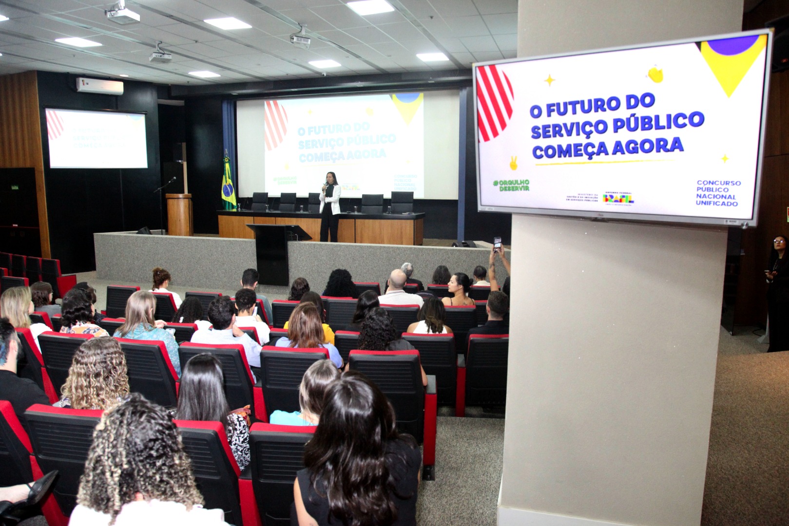 Aprovados na primeira edição do CPNU no cargo de ATPS participaram de apresentações dos secretários e representantes do MGI nesta segunda. Foto: André Corrêa