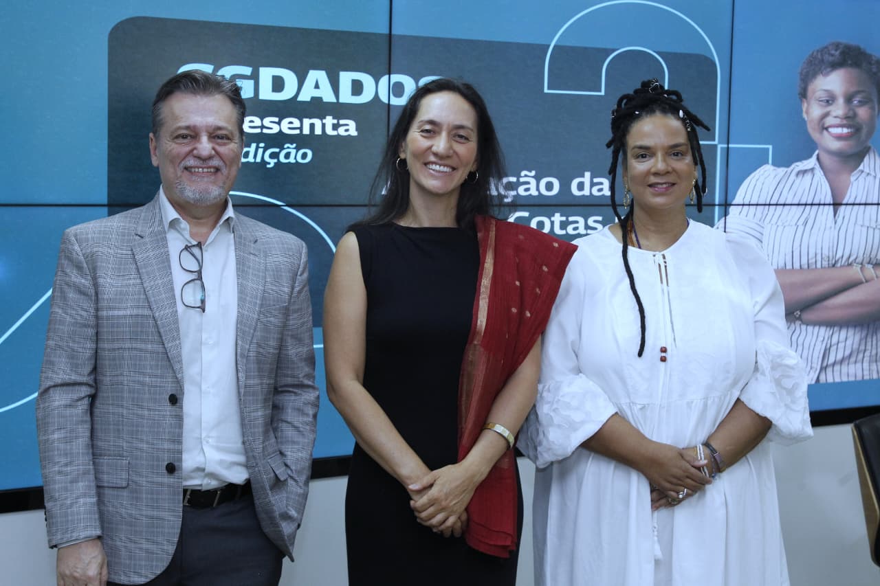 A secretária-executiva do MGI, Cristina Mori, entre Alexandre Gomide (Enap) e Marcilene Garcia (MIR), em debate sobre igualdade racial e implementação da Lei de Cotas no serviço público. Foto: Adalberto Marques