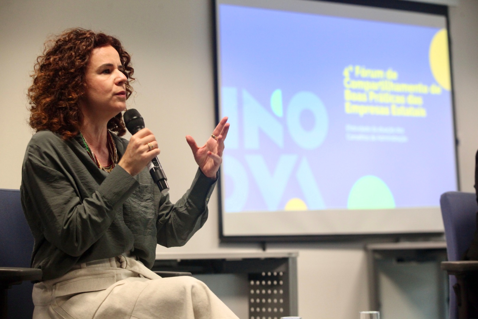 Secretária Elisa Leonel fala durante edição do Sest Convida, outra ação da Secretaria de Coordenação e Governança das Empresas Estatais Federais. Foto: Mateus Tourinho/MGI