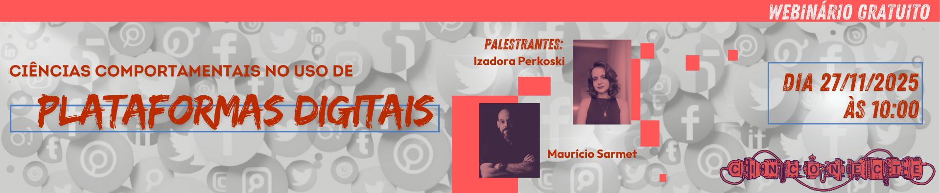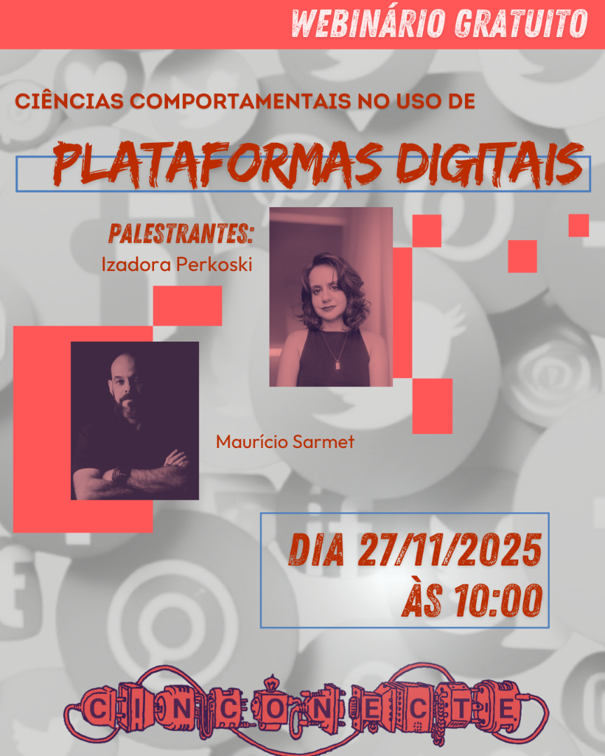 Banner ilustrativo do Webinário da Rede Cinconecte: "Ciências Comportamentais no uso de plataformas digitais".