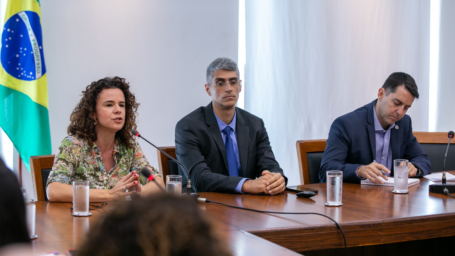 O Sest Convida foi realizado na sede o MGI e contou com participação da secretária da Sest, Elisa Leonel, do secretário adjunto da Sest, Pedro Cavalcante, e do coordenador-geral de Participações Orçamentárias da STN, Bruno Cirilo. Fotos: Washington Costa