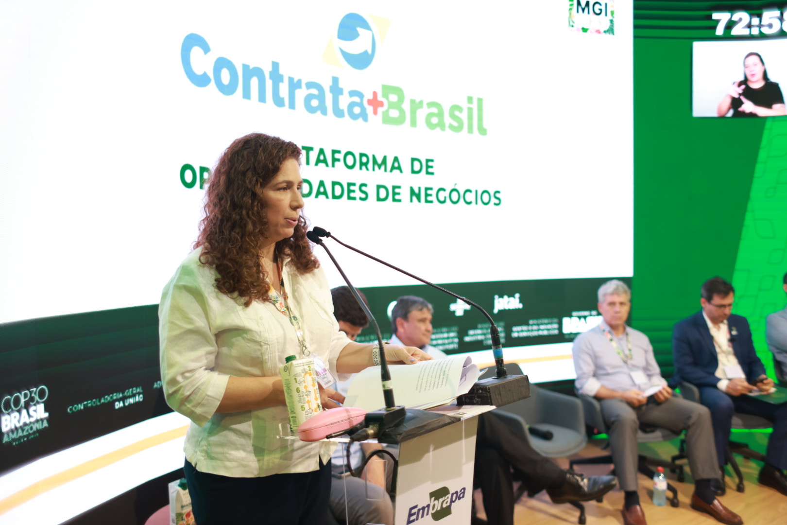Ministra Esther Dweck apresenta o CAR como o primeiro Bem Público Digital do Brasil durante a COP30 e debate soluções tecnológicas abertas para acelerar a sustentabilidade global junto com representantes do Brasil, Noruega e outras nações. Foto: Jhonathan Braga