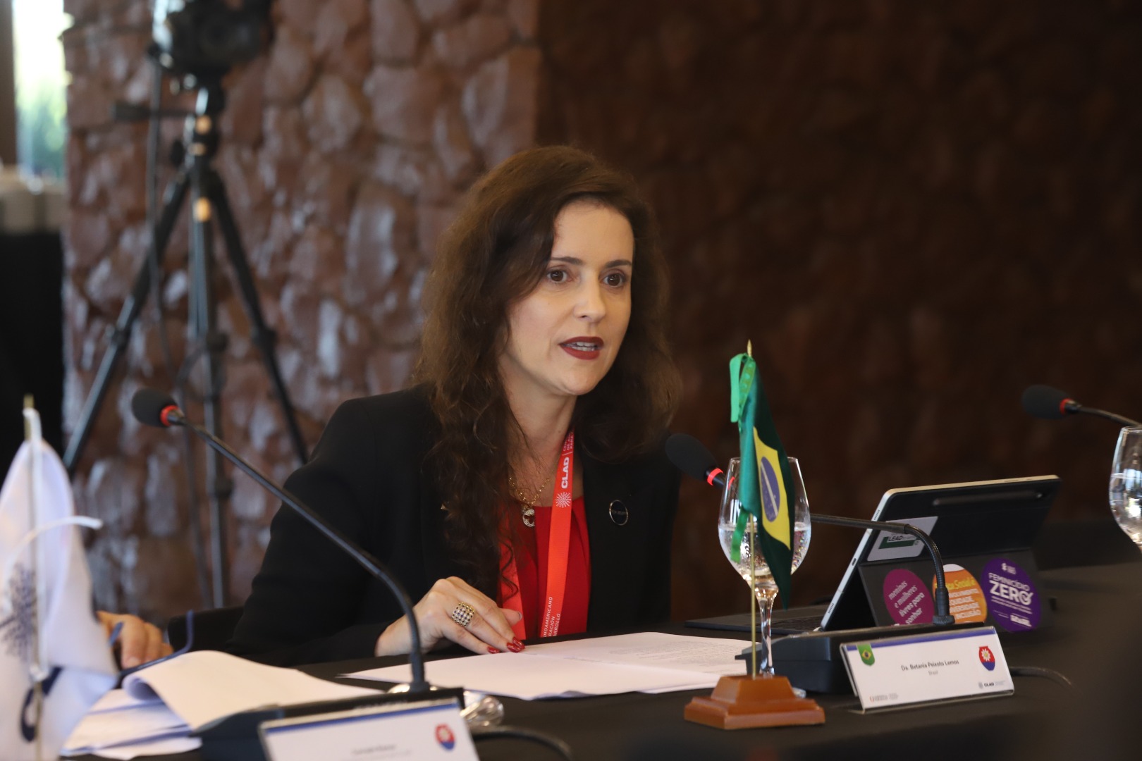 A presidenta da Enap, Betania Lemos, representa a ministra Esther Dweck na reunião do Conselho Diretor do CLAD, em Assunção (Paraguai), que marcou o encerramento do mandato brasileiro e a assinatura da Carta de Intenções com a OTCA. Foto: CLAD