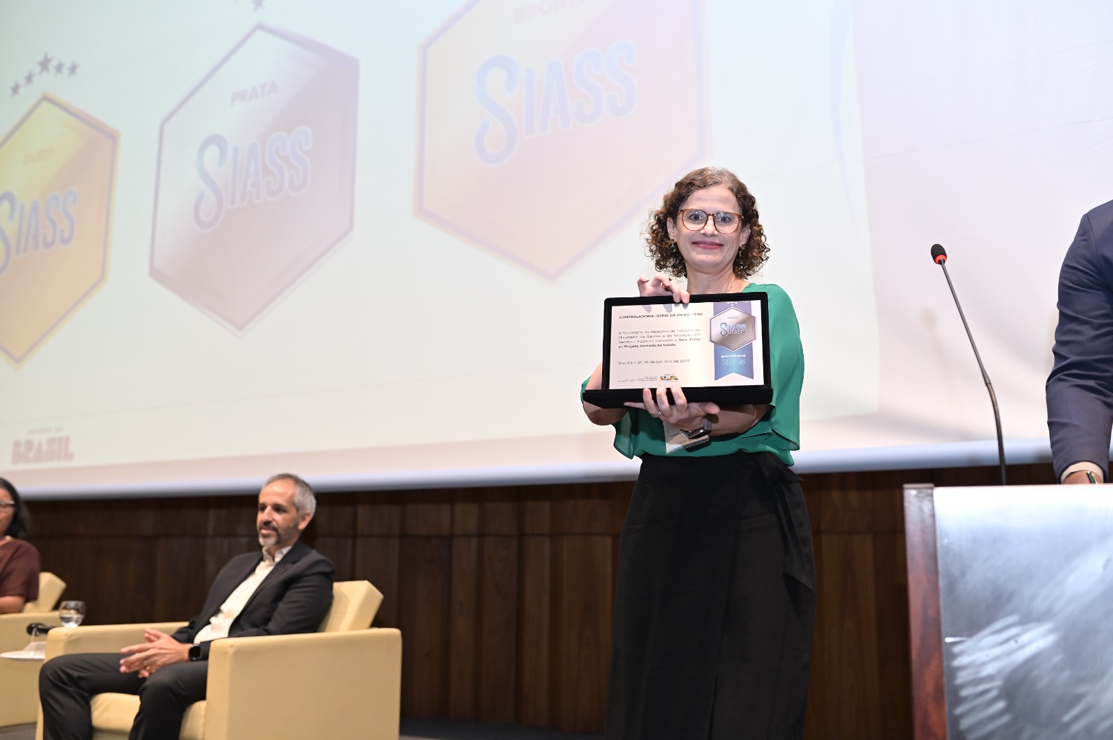 A categoria bronze do Selo SIASS 2025, temática “Promoção à Saúde Mental”, foi entregue ao projeto “Central de Acolhimento e Acompanhamento em Saúde”, da PRF. Foto: Rodrigo Lacerda