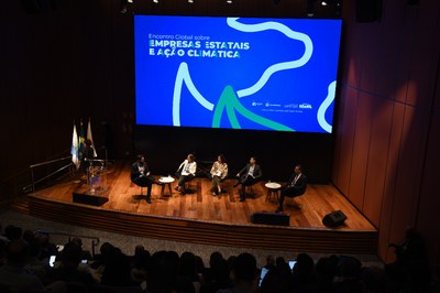 Painel do Encontro Global sobre Empresas Estatais e Ação Climática debate o papel das estatais na transição ecológica e no desenvolvimento sustentável. Foto: Ana Carolina Fernandes