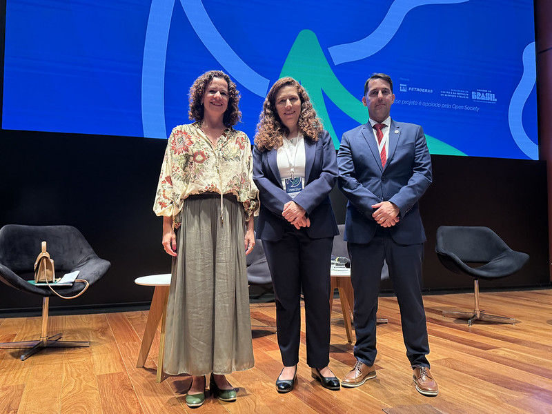 Da esquerda para direita: secretária de coordenação e governança das empresas estatais (Sest/MGI), Ministra da Gestão, Esther Dweck, e secretário adjunto da Sest, Pedro Cavalcante, durante Encontro Global sobre Empresas Estatais e Ação Climática. Foto: Ana Carolina Fernandes