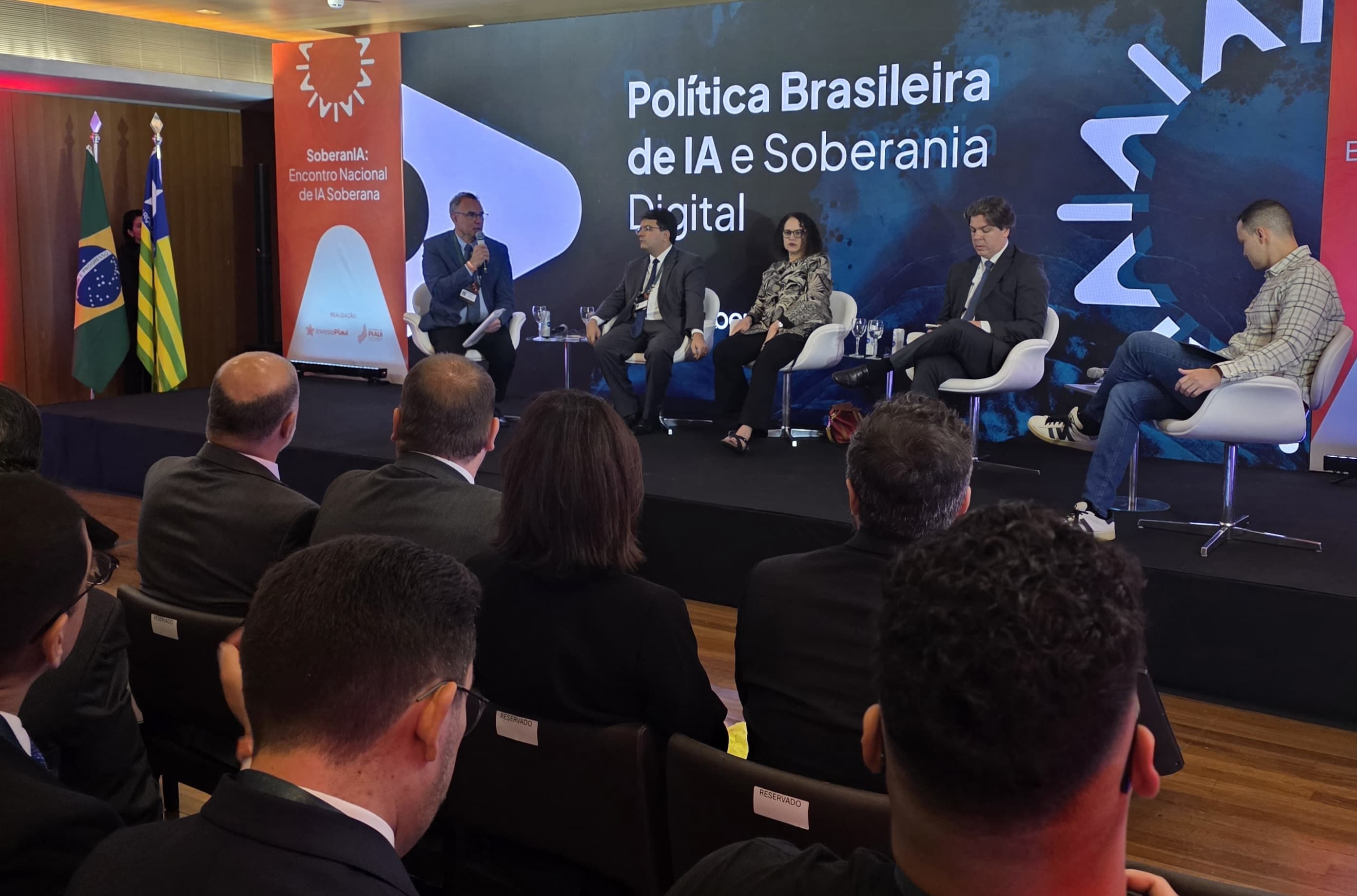O secretário de Governo Digital, Rogério Mascarenhas, participa do Encontro Nacional de IA Soberana ao lado de pesquisadores e autoridades, destacando a importância da Nuvem de Governo e da soberania dos dados para fortalecer políticas públicas e impulsionar o desenvolvimento tecnológico nacional. Foto: Divulgação