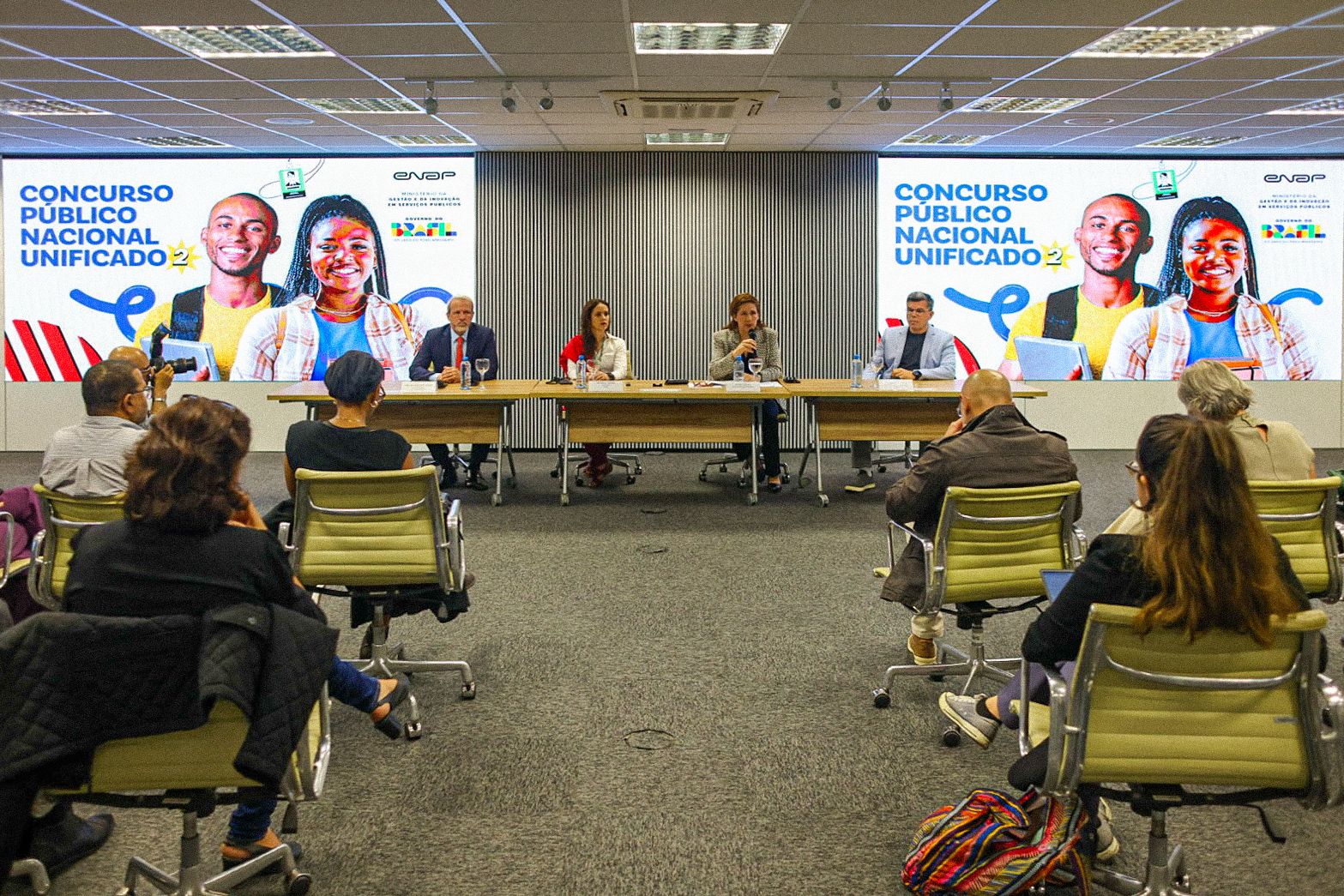 Coletiva na Enap reúne a ministra Esther Dweck e equipes responsáveis pela operação do CPNU 2.. Foto: Adalberto Marques
