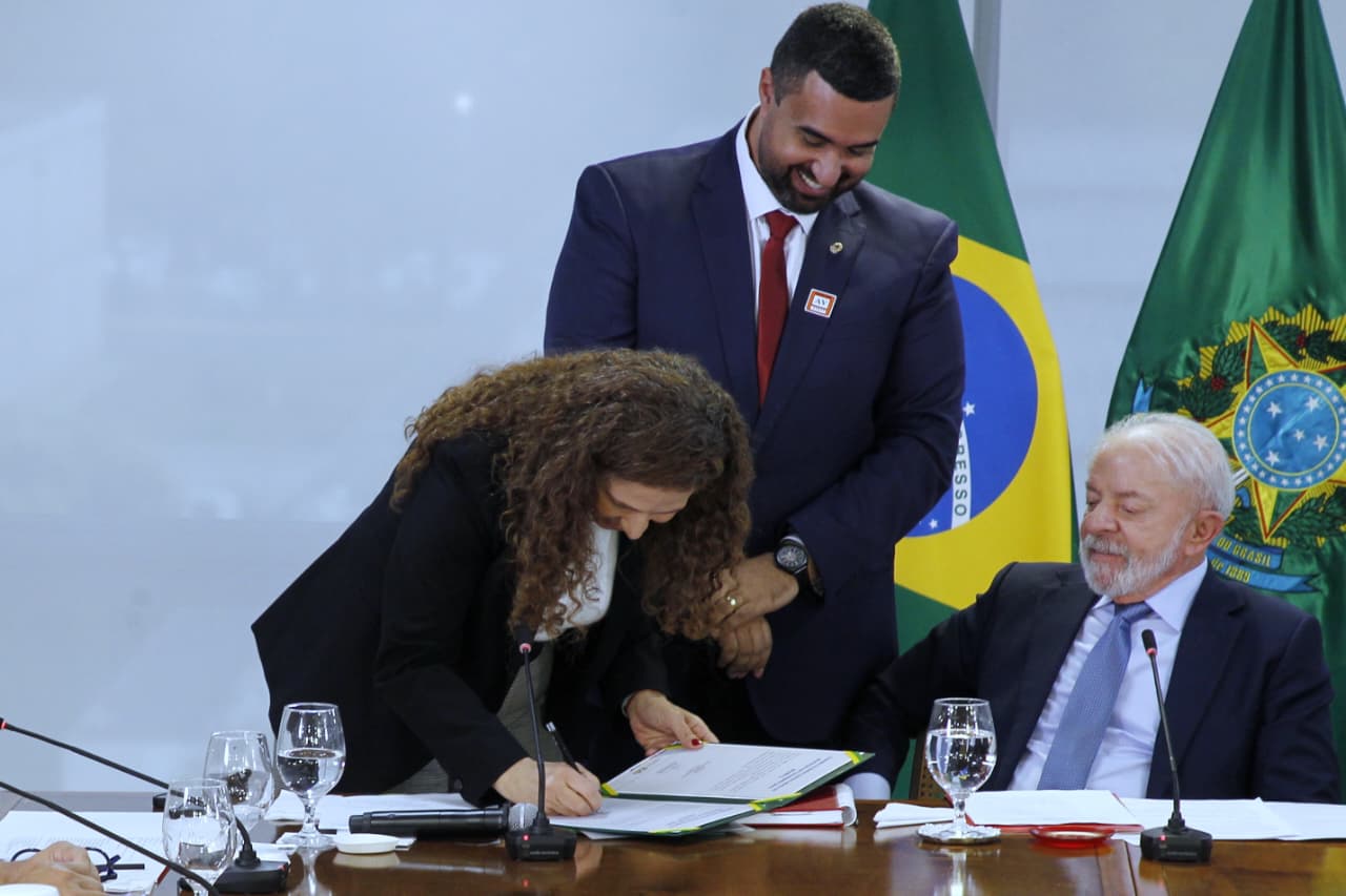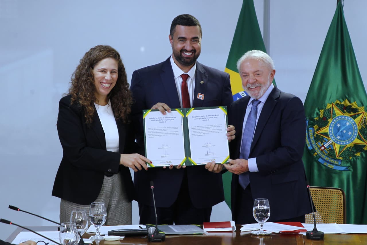 No Palácio do Planalto, o governo federal formalizou a doação de área da União para a regularização fundiária da Quinta Lebrão, em Teresópolis (RJ), beneficiando mais de 10 mil famílias. A iniciativa, conduzida pelo MGI por meio da SPU, integra o programa Imóvel da Gente. Foto: Adalberto Marques