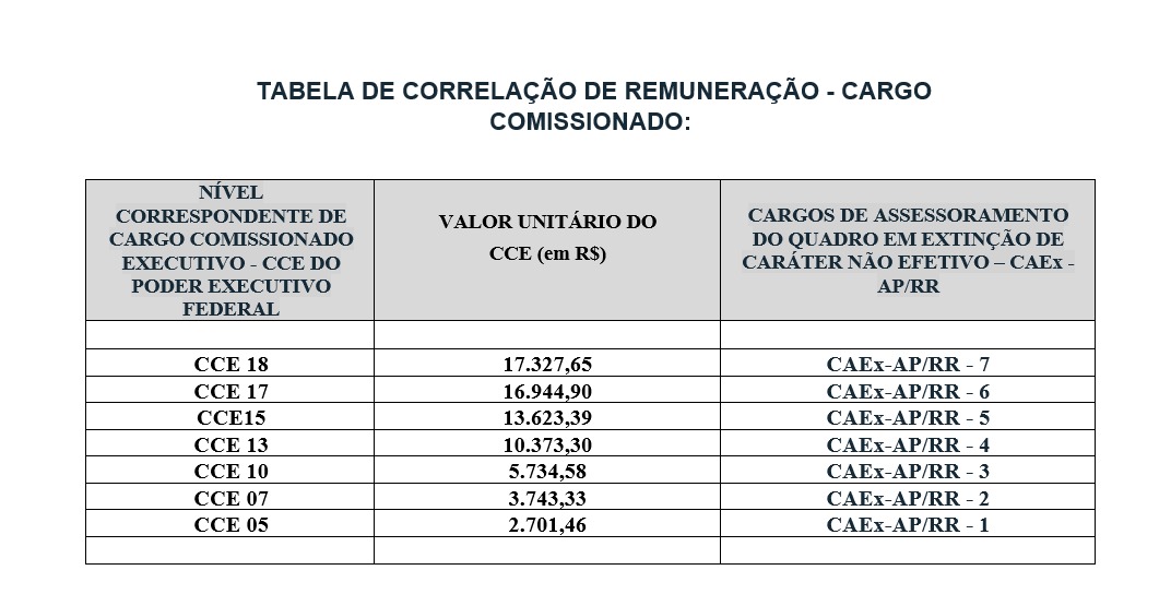 CEEXT informa tabela de remuneração dos cargos comissionados para efeitos de transposição