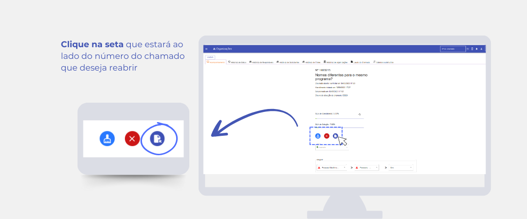 4. Clique no ícone de 'reabertura de chamado' (folha de papel em circulo azul)