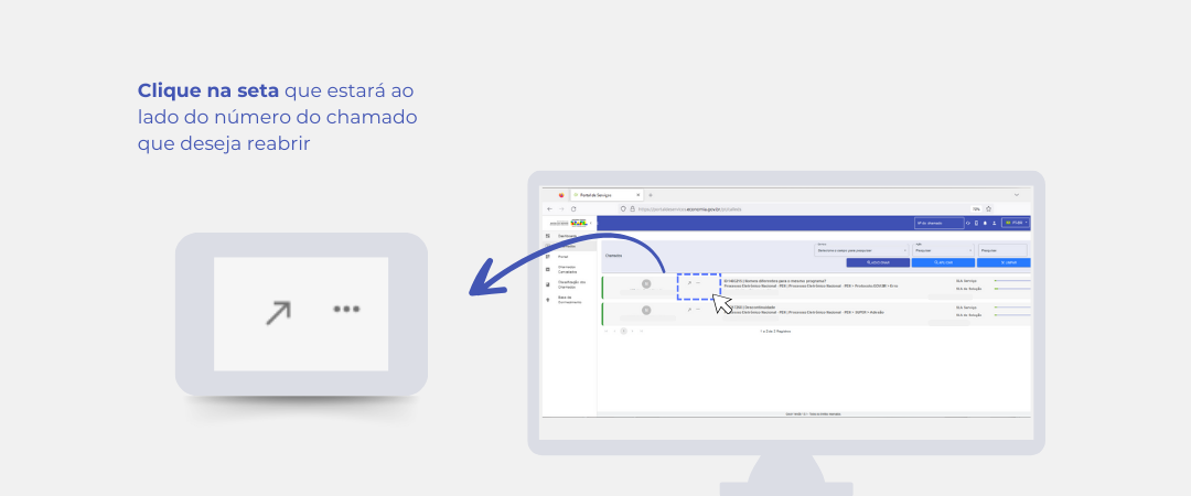 Para realizar a reabertura do seu chamado no portal de serviços, siga o passo a passo a seguir: