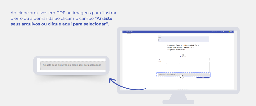 Para uma melhor compreensão, você pode adicionar arquivos clicando no campo "Arraste seus arquivos ou clique aqui para selecionar".