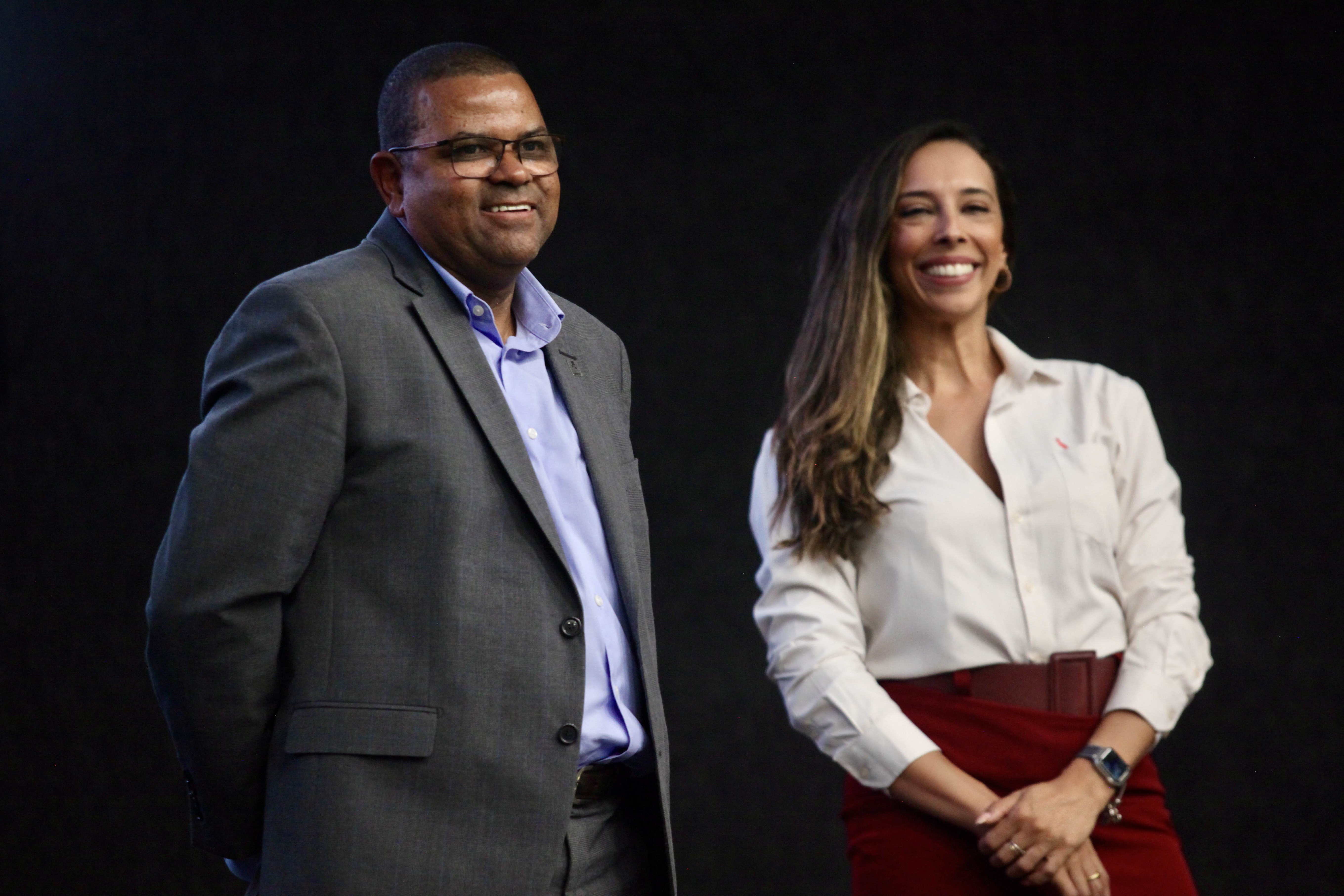 Secretário de Serviços Compartilhados do MGI, Cilair Rodrigues, e secretária adjunta de Serviços Compartilhados, Isabela Gebrim, anunciam a inclusão de mais sete ministérios ao Centro de Serviços Compartilhado. Foto: André Corrêa/MGI