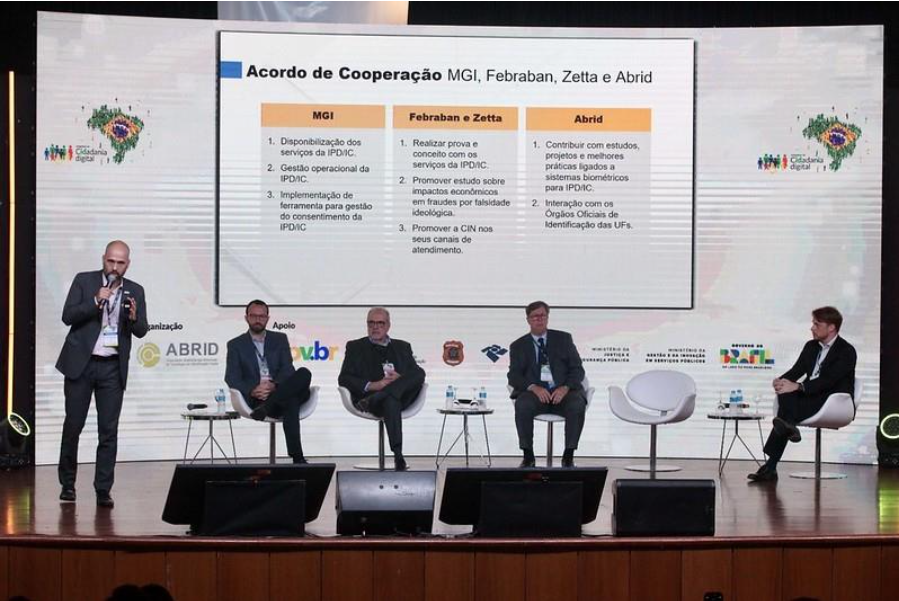 Diretor de Identidade Digital, Hudson Mesquita, apresenta parceria com entidades privadas durante painel sobre Infraestrutura Pública Digital de Identificação Civil. Foto: André Corrêa