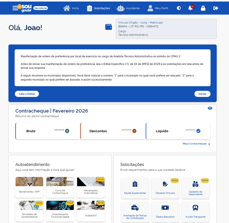 A manifestação de preferência deve ser realizada exclusivamente por meio do aplicativo SouGov.br ou pelo endereço eletrônico www.gov.br/sougov. O prazo vai até as 23h59 da próxima terça-feira, dia 5 de maio. A ausência de manifestação será interpretada como concordância com a definição da lotação pelo interesse da Administração.