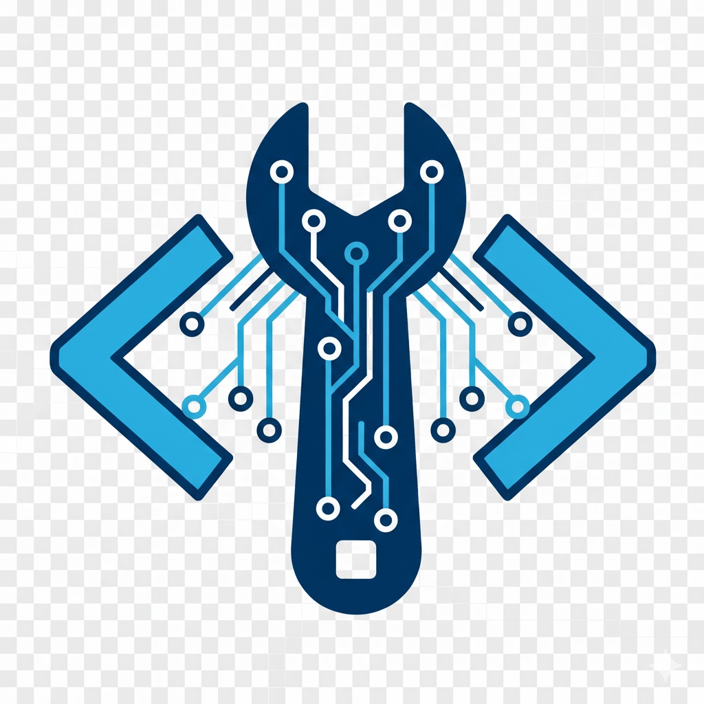 Figura de uma chave inglesa ladeada por sinais de maior e menor, com linhas conectoras.