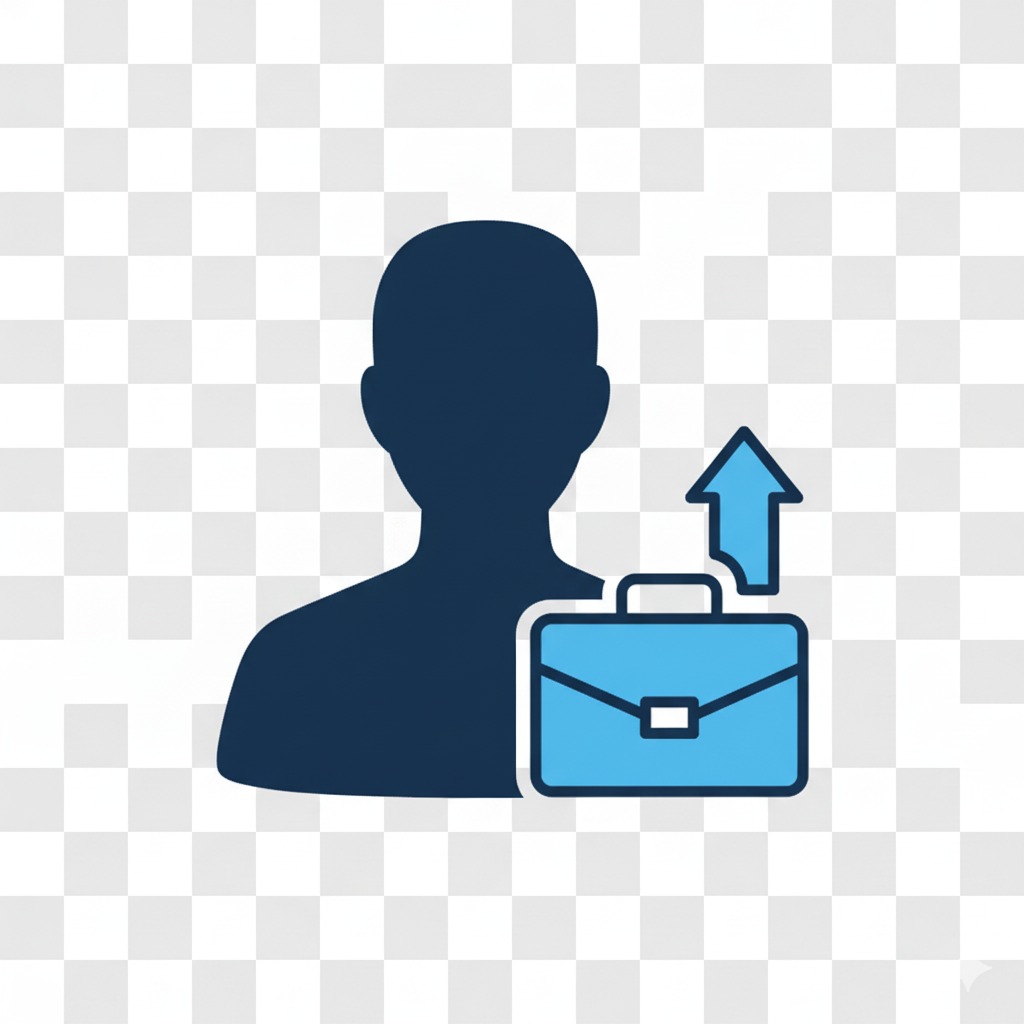 Figura de busto de um homem com uma carta ao lado e uma seta apontando para cima.