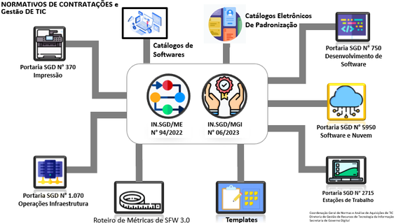 Com o intuito de auxiliar nos processos de contratações de soluções de TIC dos órgãos e entidades do SISP, são disponibilizados nesta página, por meio de um click, as normas aplicáveis, guias, modelos, diretrizes, templates de artefatos para contratação, cursos, perguntas e respostas, canais de atendimento e muito mais.