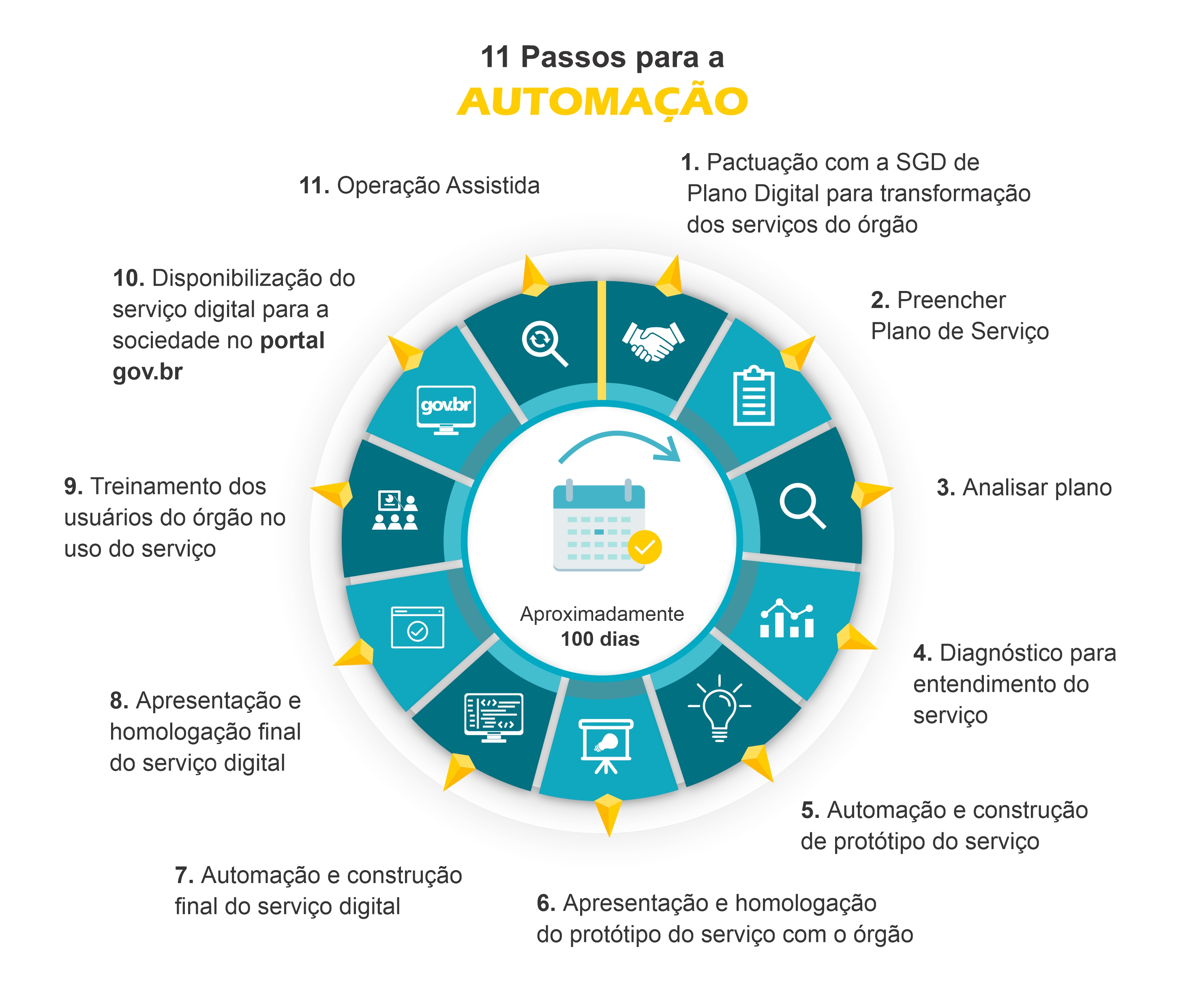 10 - Disponibilização do serviço digital para a sociedade no portal gov.br: a equipe de automação disponibiliza para a sociedade o serviço na data acordada com o órgão solicitante;