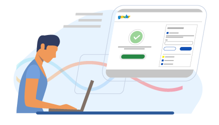 Ilustração de uma pessoa utilizando o notebook, ela está se autenticando no GOV.BR