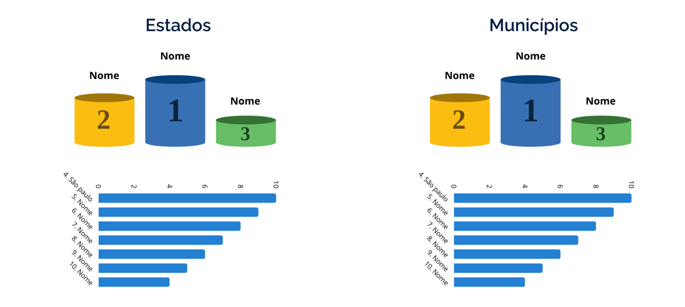 Comparação entre os rankings de Estados e Municípios, destacando os três primeiros colocados.