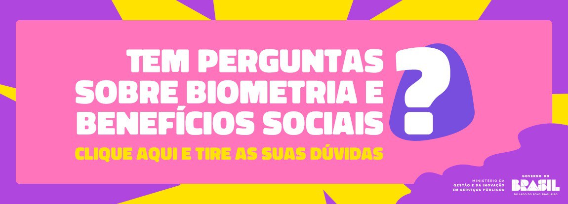 O Governo do Brasil começou a usar a biometria (impressão digital dos dedos da mão e foto do rosto) para garantir que o seu benefício chegue com segurança até você, sem fraudes.
