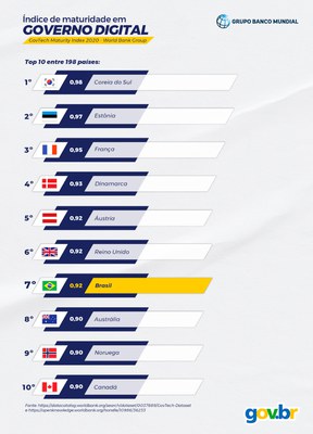 O Brasil acaba de ser reconhecido pelo Banco Mundial como o sétimo país com a mais alta maturidade em Governo Digital no mundo. O resultado foi medido no GovTech Maturity Index 2020, um ranking que avalia o estado atual da transformação digital do serviço público em 198 economias pelo mundo.