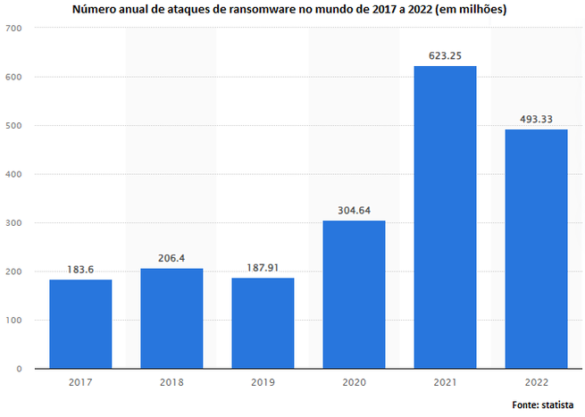 Os altos lucros obtidos têm alavancado o modelo RaaS. No primeiro trimestre de 2022, foram identificados 31 grupos de extorsão de RaaS em todo o mundo, em comparação com os 19 grupos existentes no mesmo trimestre de 2021 (https://www.statista.com/statistics/1374743/number-of-raas-and-extortion-groups-worldwide/ ).