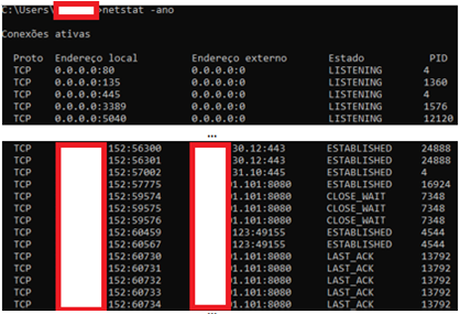 - Preservação de evidências, com a criação de uma imagem do sistema e da memória dos dispositivos afetados, a fim de auxiliar nas atividades de identificação do malware, mecanismos e técnicas utilizados, indicadores de compromisso (IoCs) e outros arquivos e binários relevantes;