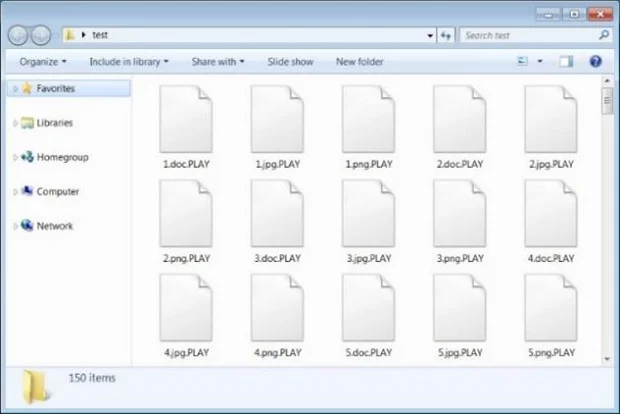 O Play criptografa os arquivos da vítima – incluindo a extensão. play nos arquivos criptografados (daí o seu nome) – e também exfiltra dados do sistema infectado, incluindo no diretório raiz das máquinas infectadas uma nota de ransomware com um endereço de e-mail para as vítimas entrarem em contato. A vítima, além de perder acesso aos seus arquivos também sofre a ameaça do vazamento público dos dados exfiltrados caso o pagamento não seja realizado.